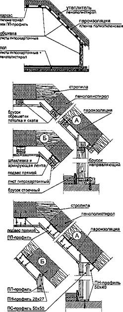 Мансарда с обшивкой на деревянном каркасе (рис.16.а, б)