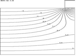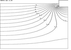 Для исследования тепловых потерь заглубленными зданиями использовалась стандартная программа, в которой реализован метод конечных разностей. В процессе моделирования назначались теплотехнические характеристики ограждающих конструкций, грунта и начальное распределение температур в грунтовом массиве. При этом коэффициент теплопроводности грунта принимался как для суглинка λ= 2,944 Вт/мºС [1]. Температура грунта на определенной глубине и температура наружного воздуха была принята согласно климатологическим данным г. Днепропетровска. При расчетах тепловых потерь температура внутри помещения принималась равной 180С.