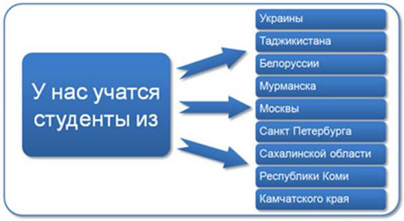 Рис. 2. Возможности обучения студентов в МГИУ из различных регионов страны.