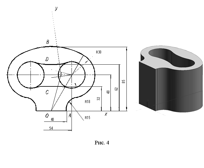 Затем следует переходить к решению конкретных задач, возникающих перед студентами в процессе освоения курса инженерной графики. Это могут быть задачи из раздела «Проекционное черчение» (рис. 1), где можно наблюдать формирование среза или паза на поверхности вращения. Здесь задействуются операции построения тел вращения, базовых элементарных тел, булевские операции.
