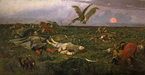 Будучи художником лирического склада и горячо любя родину, Васнецов нашёл в “Слове” поэтические мотивы для будущего своего произведения. Его картина – эпически величественное произведение, вызывающее глубокое преклонение перед героической гибелью павших за родину героев.