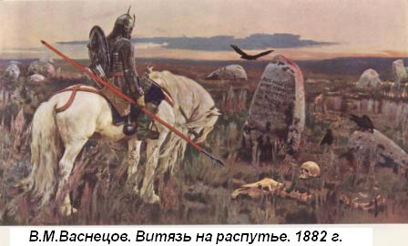 Увлечение Васнецова народным эпосом проявилось в картине "Витязь на распутье".