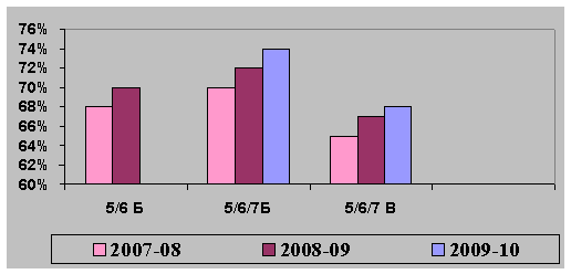 По первому критерию я анализировала уровень обученности учащихся за три года в разных классах по русскому языку и литературе.