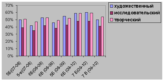 По второму критерию я анализировала уровень сформированности творческих способностей учащихся за последние три года по методике , согласно которой мы можем выделить следующие типы потенциала детей: