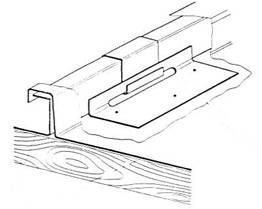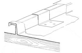 Рядовые полосы укрепляют вдоль малого отгиба, плотно подтягивая ее к обрешетке кляммерой. Кляммеры ставят из расчета не менее двух на каждую сторону листа (примерно через 600 мм), крепят оцинкованными гвоздями или шурупами к боковым граням брусков обрешетки и загибают их на кромку малого отгиба.