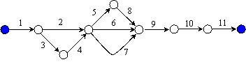На сетевом графике можно наглядно представить последовательность выполнения работ и оценить общую длительность выполнения проекта. Полный путь в сетевом графике – это непрерывная последовательность взаимосвязанных работ и событий (от начального до конечного). Помимо полного пути, по сетевому графику определяется критический путь – наиболее длинный путь последовательных работ и событий (от начального до конечного). Критический путь состоит из критических работ. Работа считается критической, если для неё резерв времени в плане проекта равен нулю. Как правило, задержка критической работы приводит к задержке всего проекта. Некритические работы имеют некоторый резерв времени. Задержка с выполнением некритической работы не приводит к задержке всего проекта, если величина задержки не превышает имеющийся для данной работы резерв времени.
