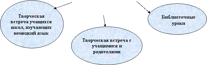 Кроме библиотечных уроков в городской библиотеке можно организовать следующие формы работы, способствующие популяризации немецкого языка не только в рамках школы, но и посёлка, города.