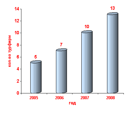 Количество организаций функционирующих в области туристской индустрии города Тобольска ежегодно увеличивается, благодаря этому растут предложения в области предоставления туристских услуг, разработка данными организациями разнообразных туристских маршрутов способствует увеличению интереса у гостей города на предоставляемые туристские услуги, что ведет к увеличению спроса.