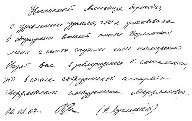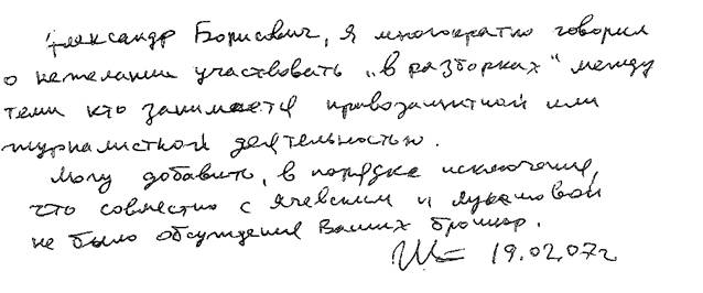 Характерный пример – история с письмом об обсуждении моей брошюры.
