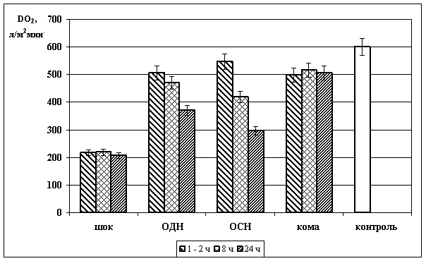 Рисунок 1. Доставка кислорода (DO2) при различных клинических формах острого периода травматической болезни.