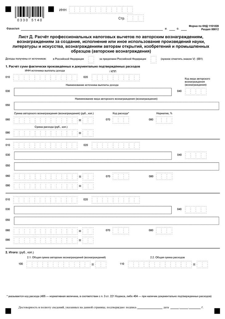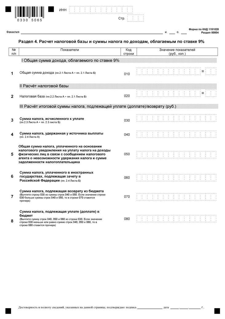 налоговая декларация по налогу на доходы физических лиц (форма 4-НДФЛ), форма по КНД 1151021 от 01.01.2001 № САЭ-3-04/366@ в ред. от 01.01.2001 г.; порядок ее заполнения