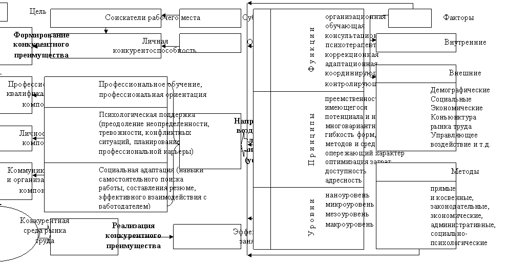 - разработать направления повышения результативности деятельности институтов содействия занятости в аспекте формирования и содействия реализации конкурентных преимуществ соискателей на рынке труда.