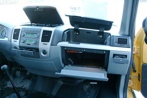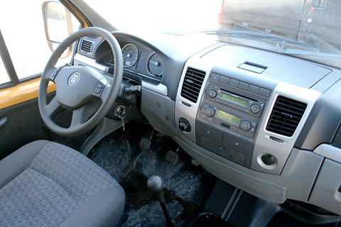 Но самое впечатляющее изменение – новая передняя панель. Она симпатична и функциональна: появились удобные подстаканники, штатная магнитола Blaupunkt, электронный блок управления климатом (рассчитанный и на появление кондиционера)… Завершает удивительную для российского грузовика картину приличное качество сборки и приятные мелочи, вроде крепление шариковой ручки в бардачке.