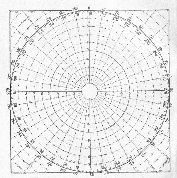 Рис. 4. Определение ЭДЦ на маневренном планшете по двум отметкам цели а и в.