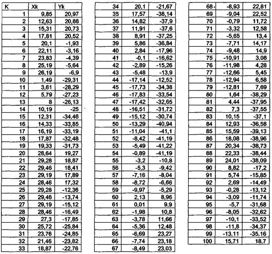 Ниже они приведены в табличной и графической формах (его вы строите сами). Для примера здесь показаны не все значения, а только 100.