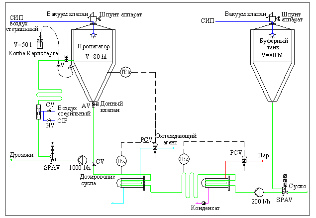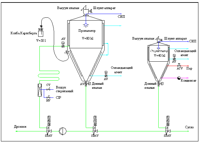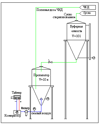 Итак, исходя из системного анализа и синтеза процесс подготовки сусла необходимо перевести из процесса периодического в непрерывный, однако, имея дело с живыми микроорганизмами и очень консервативной технологией. необходимо исследовать еще и технологические аспекты необходимости усовершенствования процесса пропагации ЧКД: