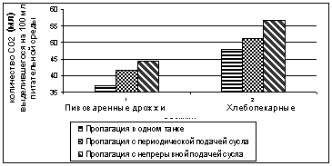 4. В процессе проведения экспериментальных исследований было выявлено влияние способа пропагации дрожжевых культур не только на показатели производительности (достигнутое содержание клеток и время его достижения), но и на их физиологическое состояние, а именно на упитанность, количество мертвых клеток и бродильную энергию клеток.