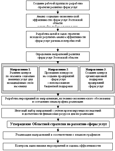 Рис. 11 – Алгоритм разработки и реализации стратегии развития сферы услуг Ростовской области (Авторская разработка)
