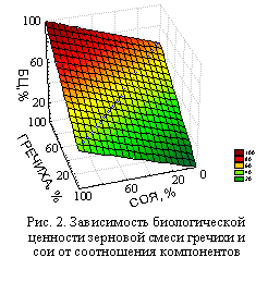 Для моделирования состава комбинированной смеси был предложен методологический подход, учитывающий такие аспекты, как влияние дозировки компонентов на аминокислотный состав, количество углеводов, жиров и белков и их соотношение, биологическую ценность (рис. 2), критерии утилизации, что актуально для создания сбалансированных по составу продуктов.