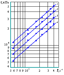 Реологическая модель течения при экструдировании может быть охарактеризована обобщенным степенным уравнением. Анализ кривых показал, что повышение температуры и влажности вызывает снижение напряжения сдвига и вязкости расплава пищевой среды. Максимальные скорости деформации, при которых можно получить экструдат хорошего качества, соответствуют интервалу 10…20 с-1.