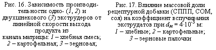В третьей главе изложено описание экспериментальных исследований процесса одно - и двухшнековой экструзии модельных пищевых сред. Они проводились на одно - и двухшнековом экструдерах, основными узлами которых являются рабочие камеры, шнеки и матрицы, регулируемые приводы и блоки контрольно-измерительной аппаратуры, совмещенные с ПЭВМ. Параметры экструзии изменялись в следующих диапазонах: влажность исходной смеси – 12…20 %; ее температура перед мат