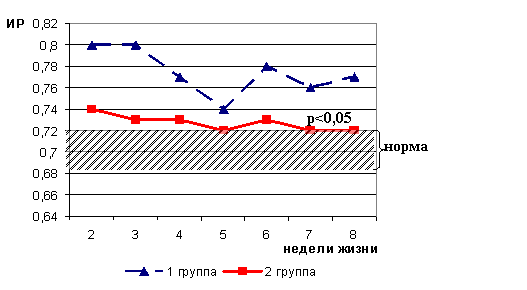 4. Длительное (более 5 недель) сохранение повышенных или значительно сниженных значений индекса резистентности в магистральных мозговых артериях (передней и средней мозговой) следует рассматривать как фактор риска ишемических нарушений с формированием повреждения вещества мозга и неблагоприятного отдаленного прогноза для психоневрологического развития