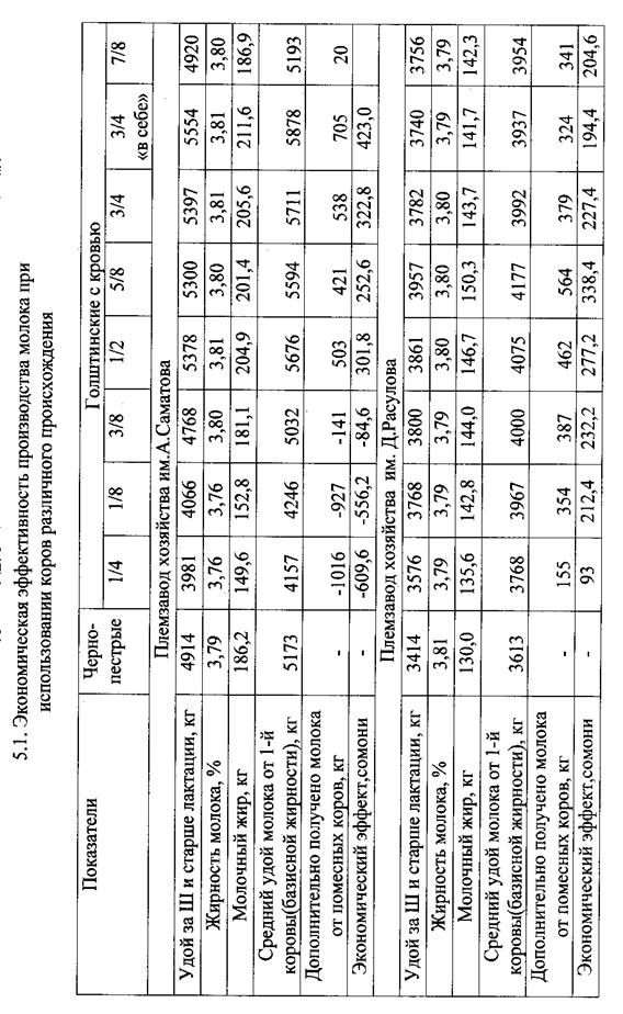 2. На данном этапе работы с маточным поголовьем таджикского типа скота ограничить повышение кровности по голштинской породе не выше 5/8-3/4.