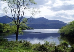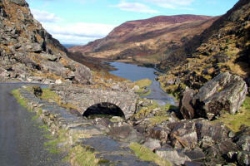 За горами Мангертон дорога продолжает двигаться на юго-запад, протискиваясь между скал, спускается к Верхнему озеру и приходит в Дерриканнии (Derrycunnihy), в очаровательный уголок, где среди яркой зелени срываются со скал многочисленные каскады воды.