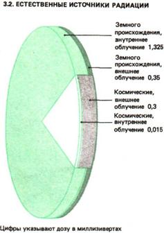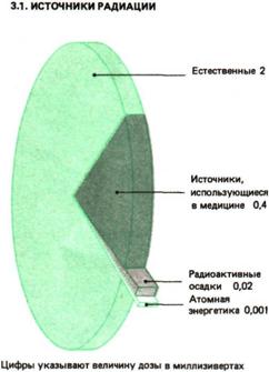 Но для основной массы населения самые опасные источники радиации - это вовсе не те, о которых больше всего говорят. Наибольшую дозу человек получает от естественных источников радиации. Радиация, связанная с развитием атомной энергетики, составляет лишь малую долю радиации, порождаемой деятельностью человека; значительно большие дозы мы получаем от других, вызывающих гораздо меньше нареканий, форм этой деятельности, например от применения рентгеновских лучей в медицине. Кроме того, такие формы повседневной деятельности, как сжигание угля и использование воздушного транспорта, в особенности же постоянное пребывание в хорошо герметизированных помещениях, могут привести к значительному увеличению уровня облучения за счет естественной радиации. Наибольшие резервы уменьшения радиационного облучения населения заключены именно в таких «бесспорных» формах деятельности человека.