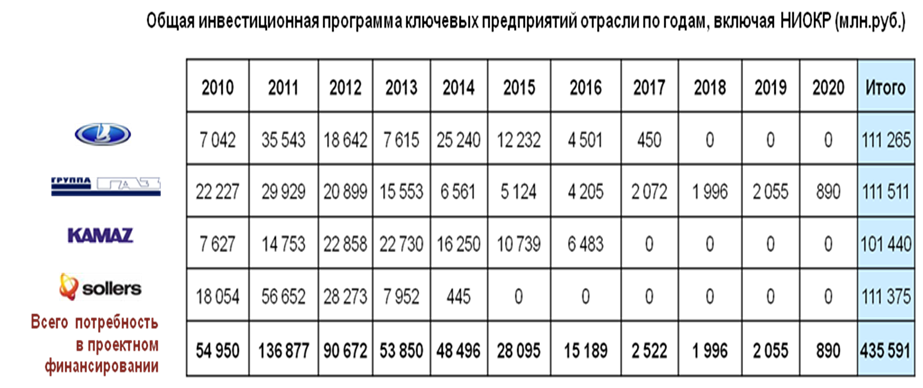 В то же время в связи с динамично меняющейся конъюнктурой рынка объем инвестиций в развитие российской автомобильной промышленности в годах потребует уточнения в более поздний период.