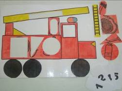 - Внимательно рассмотреть пожарную машину и сосчитать, сколько каких фигур составляют машину (сколько кругов? – покажите цифру, квадратов? – покажите цифру, треугольников?, прямоугольников?, овалов?)