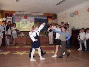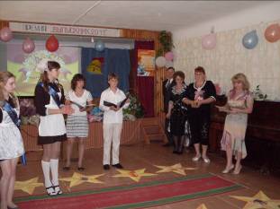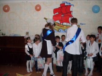 Ведущий 2. Спасибо нашим малышам за выступления и поздравления, а теперь девятиклассники хотят поздравить вас и подарить на память о сегодняшнем дне подарки.