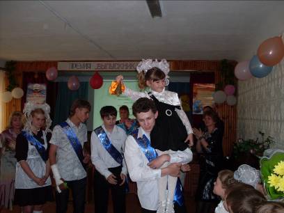 Ведущий 2. Заключительным аккордом нашей сегодняшней встречи станет мелодичное звучание того, что собрал нас сегодня вместе. Слово «Последнему звонку». (Выпускники выносят на плечах мальчика и девочку.)