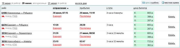 Расписание движения поездов по станции п. Поспелиха, идущих через г. Барнаул: