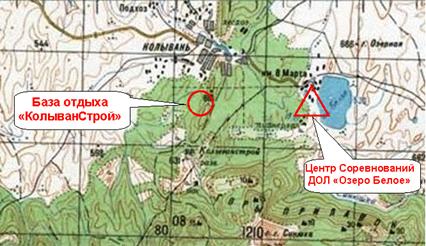 Район соревнований расположен в 5 км на юго-восток, от поселка Колывань, с западной стороны озера Белое. В районе соревнований находится ДОЛ «Озеро Белое»