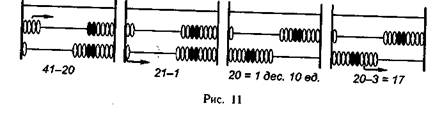 Выполним вычитание на счетах (рис. 11): 41—24.