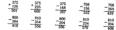 4) вычитание трехзначных, двузначных и однозначных чисел из 1000: , 1000-75, 1000-5.