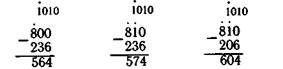 Особого внимания заслуживает решение примеров вида 800— —236, 810—236, 810—206. Следует сопоставить сначала 1-й и 2-й, а потом 2-й и 3-й примеры, особенности их решения, объяснить, в чем их различие, почему получаются разные ответы.