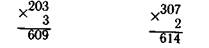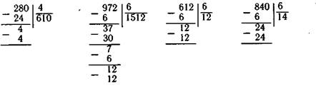 Этот вид умножения и деления представляет наибольшие трудности для учащихся. Умножение и деление с переходом через разряд выполняется приемами письменных вычислений. Учащиеся при этом впервые знакомятся с алгоритмом письменного умножения и деления. Поэтому, так же как при сложении и вычитании, следует познакомить учащихся с записью действий в столбик на самых легких случаях умножения (нет перехода через разряд) и деления (каждый разряд делимого без остатка делится на дели-| 204