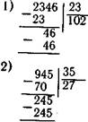 При решении всех этих примеров необходимо учитывать, что отделяемые две цифры делимого составляют число, которое либо равно, либо больше делителя, и только после этого рассматрива ются случаи, когда это число меньше делителя, и в этих случаях требуется отделить три цифры делимого.