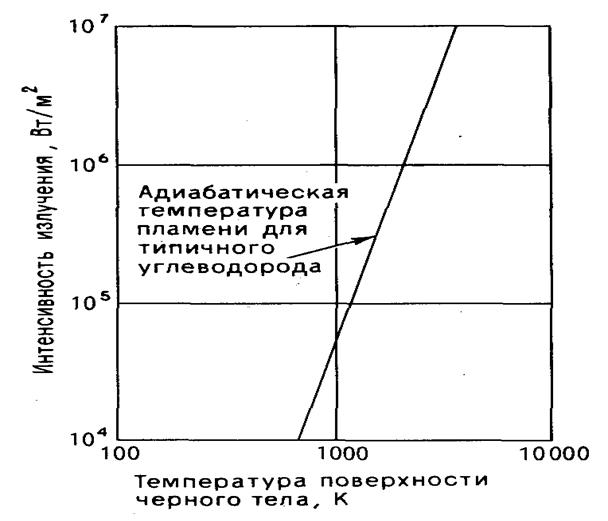 Полезно было бы проверить значения IS, получаемые при различных предположениях о величине FR и теоретической температуре, которая бы приводила к этим значениям. В вычислениях предполагается, что FR имеет значение, равное 1,0, т. е. что рассматривается эффективная температура поверхности. При FR = 1 излучается все тепло, что предполагает равенство температуры пламени адиабатической.* Поэтому из соотношения