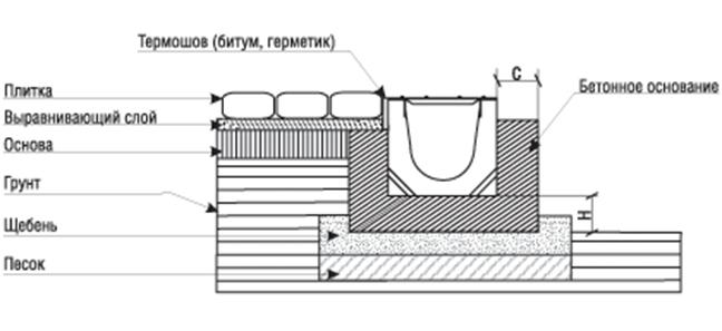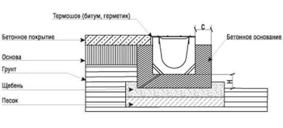 При установке в местах постоянного проезда легкового автотранспорта, каналы в обязательном порядке укладываются на бетонное основание, толщиной: 10 см.