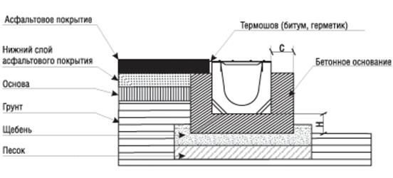 В случаях установки каналов в асфальтовое покрытие, в процессе асфальтирования, решетки рекомендуется накрывать полосой ДВП или другого материала.