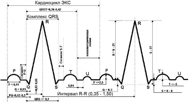 Рисунок 1 – Структура кардиоцикла и ЭКС-признаки ИМ