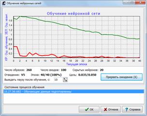 Критерием окончания обучения является прохождение в цикле всех эпох, количество которых задано в начале обучения.