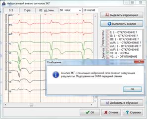 2 Методика нейросетевого анализа ЭКС для диагностики инфаркта миокарда способствует решению сложных терапевтических задач, возникающих при необходимости выбора тех или иных методов лекарственного воздействия при повреждении миокарда с целью приостановления или замедления его прогрессирования.