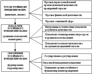 Одной из важнейших задач такой концепции является объективная и своевременная оценка угроз экономическим интересам предприятий транспорта, а также разработка мероприятий по повышению устойчивости функционирования и инновационного развития этих предприятий и отрасли в целом.