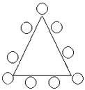 Расставить вдоль сторон треугольника цифры 1, 2, 3,..., 9 так, чтобы сумма цифр вдоль каждой стороны равнялась 20-ти.
