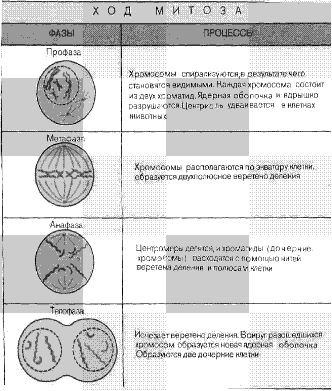 Рис. 1. Схема митоза (кариокинеза)