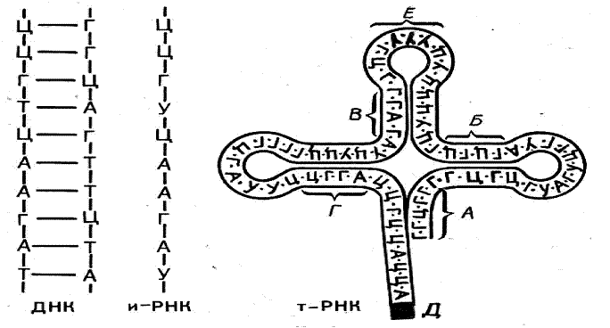 Рис. 3. Схема синтеза и-РНК Рис 4. Схема т-РНК